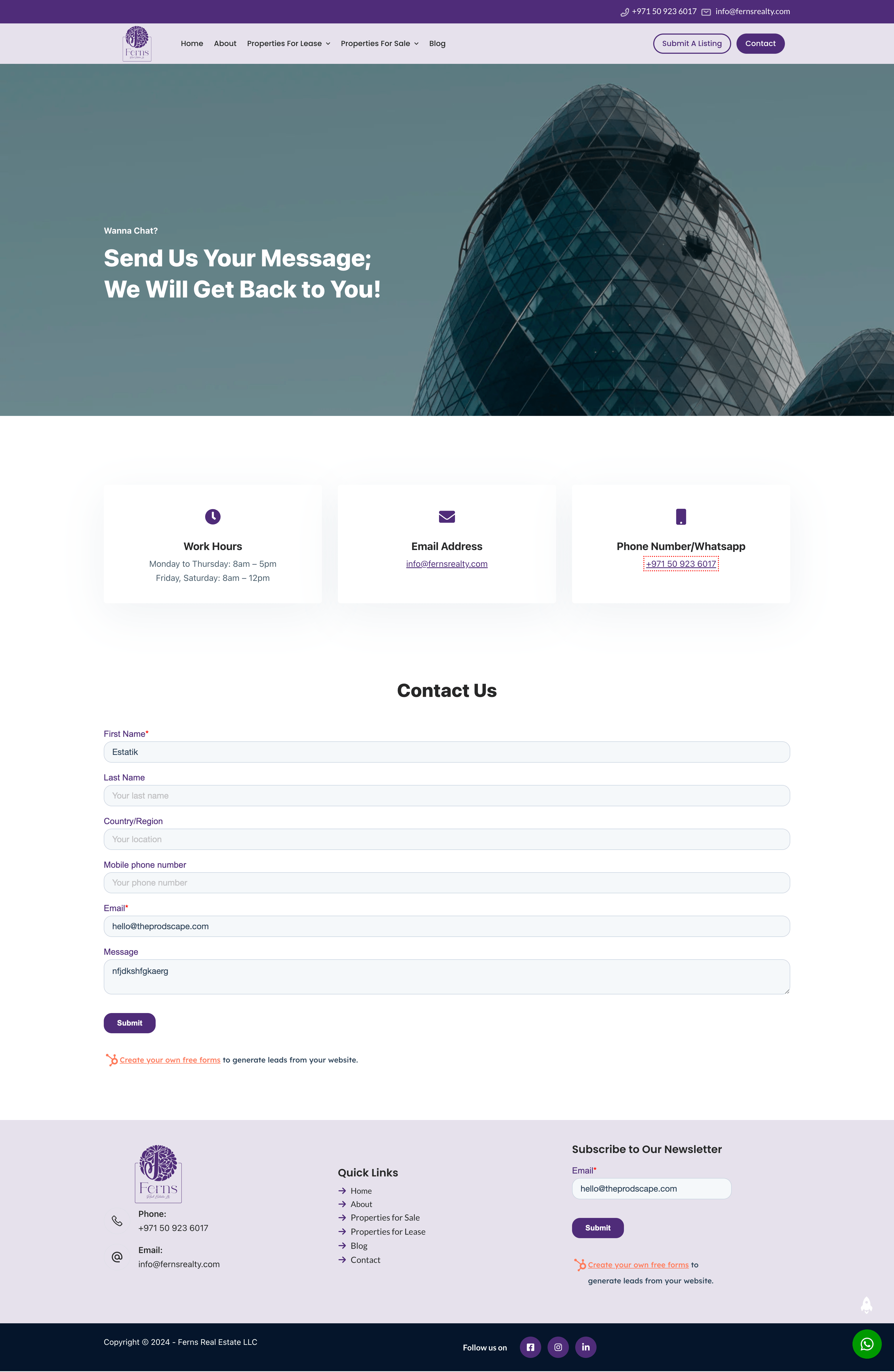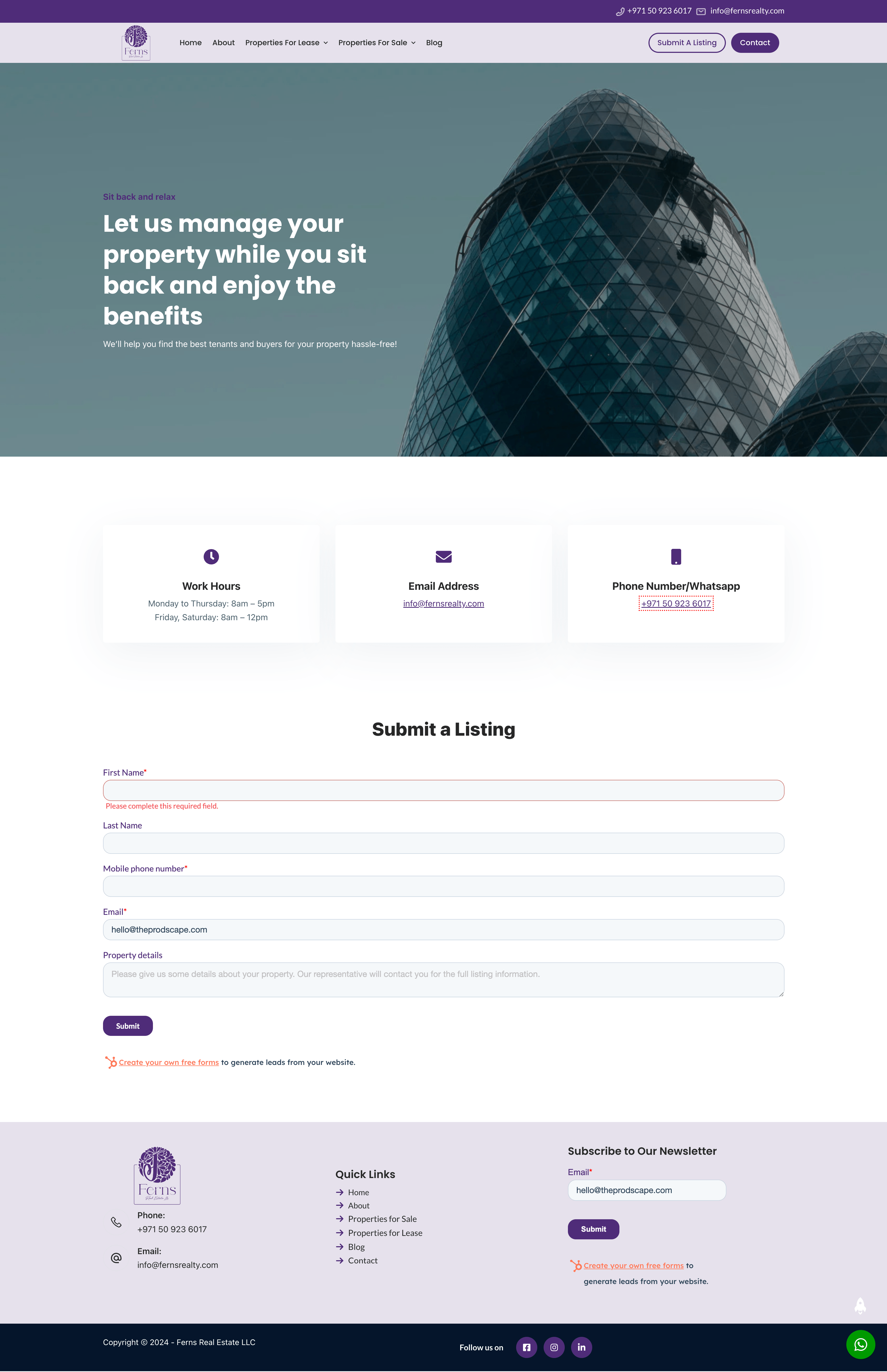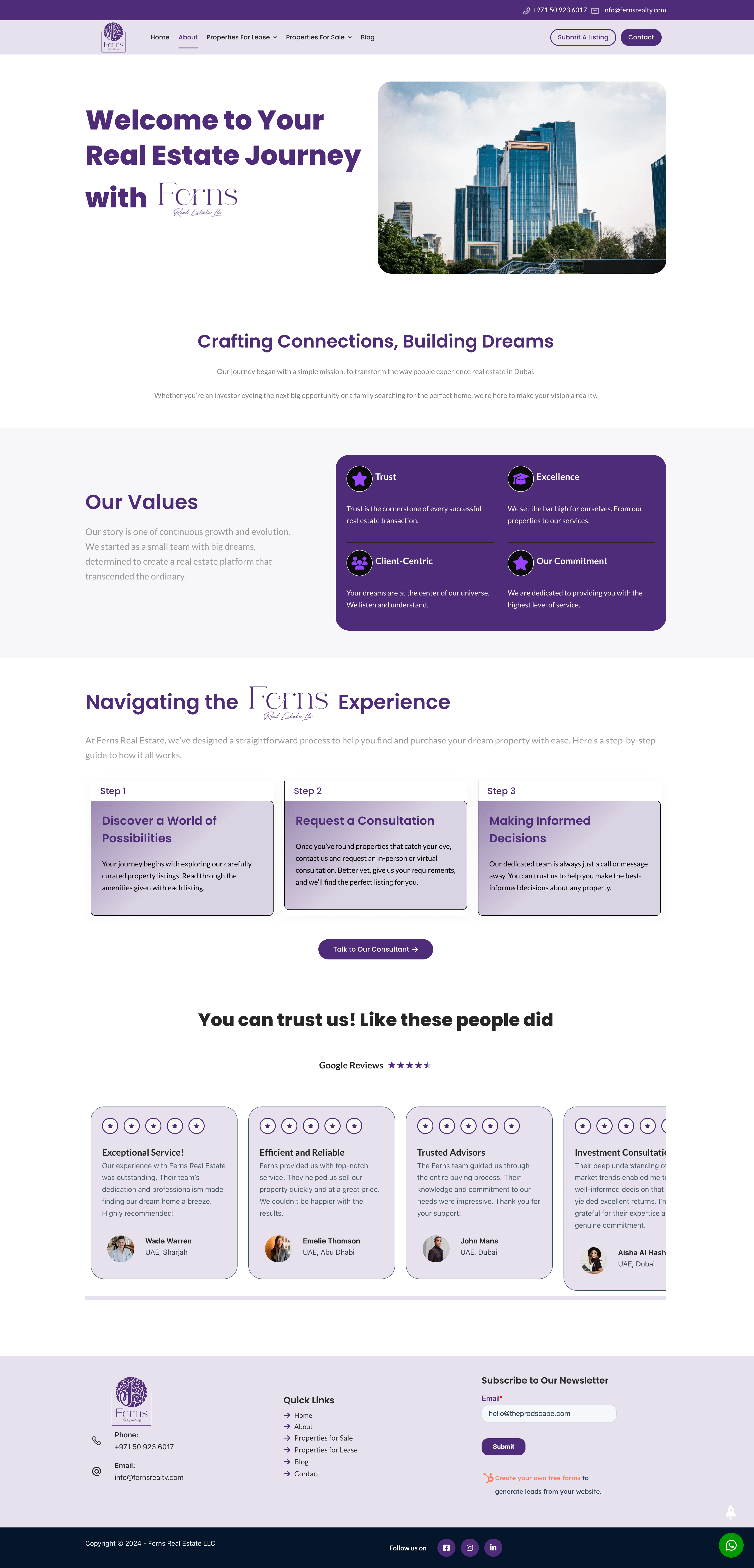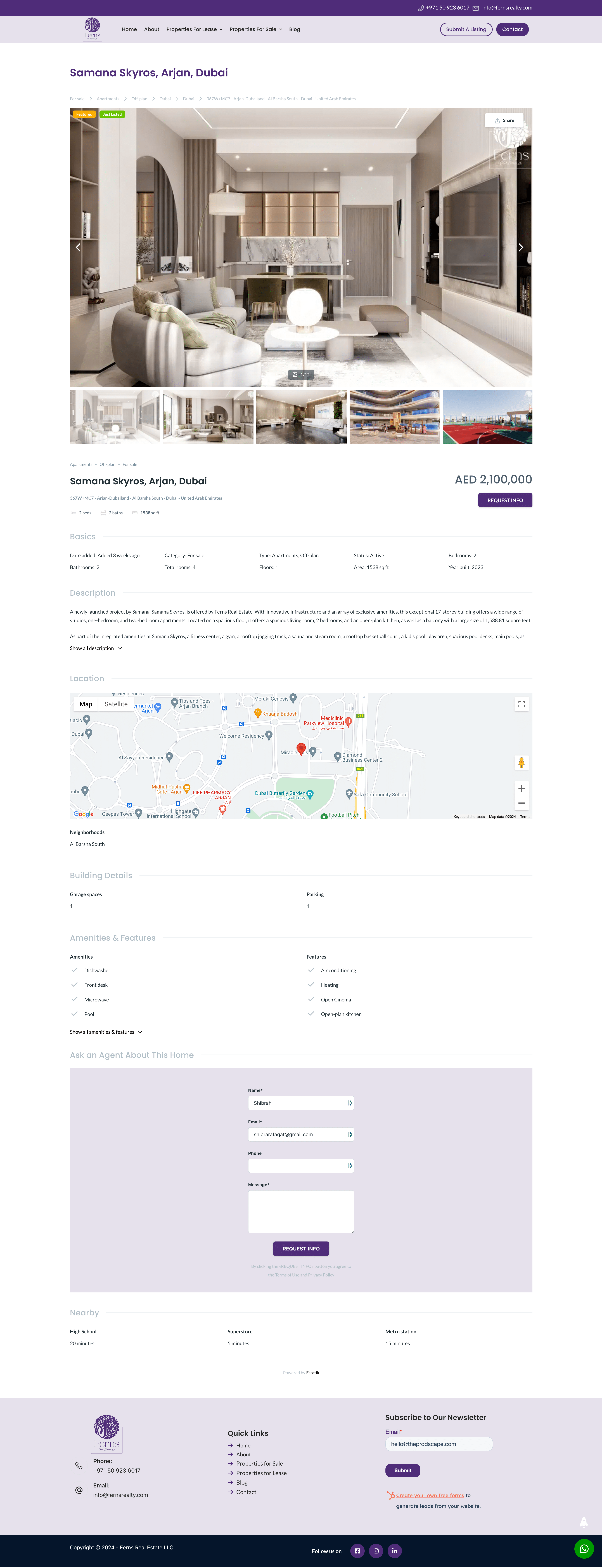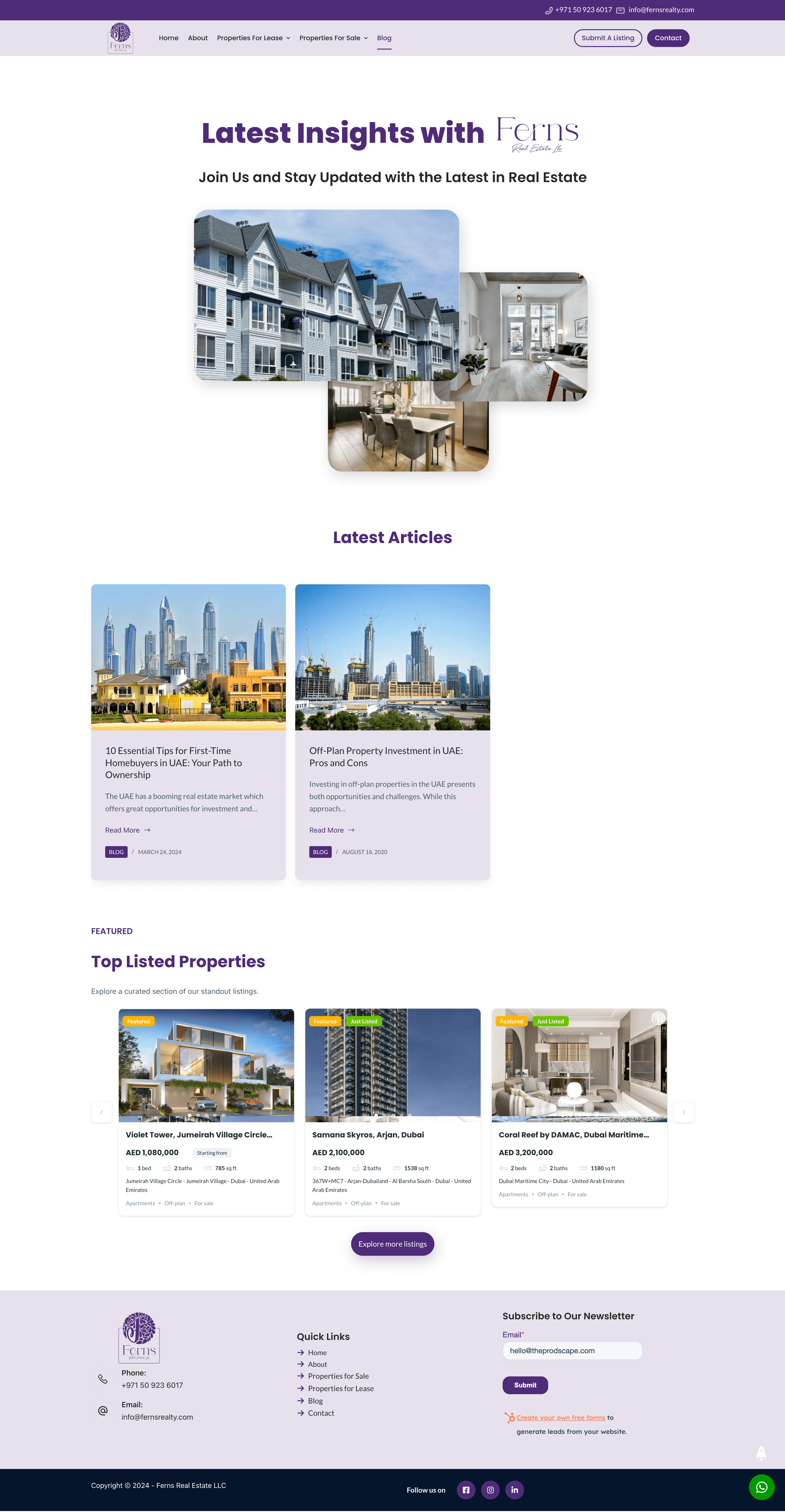 This project was for Ferns Real Estate, a company based in Dubai, UAE. The client wanted the site to be able to capture leads, generate traffic, and efficiently display property listings.